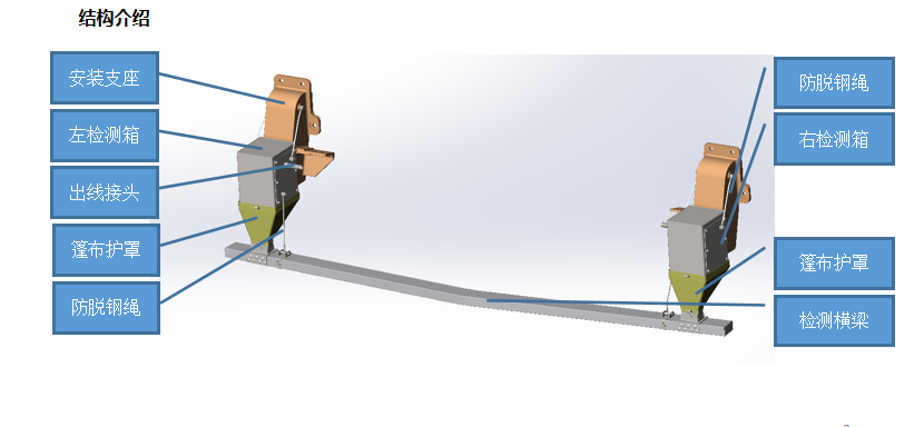 车下检测横梁配备防脱装置,左右各一套,同时左右检测箱与安装支架配备防脱装置;
