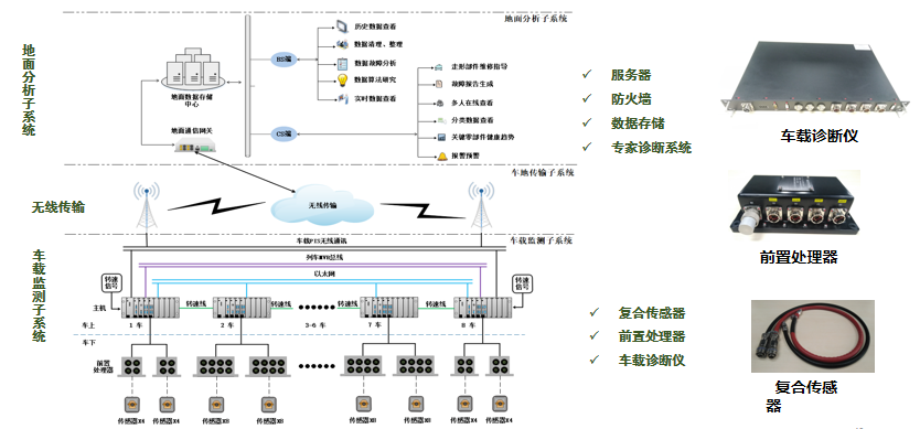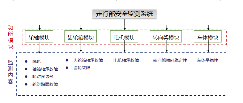 走行部在线监测系统是一种安装在车辆上的在线监测诊断设备,通过安装布设在车辆及转向架上的复合传感器,同时监测轴箱轴承、小齿轮和电机传动端轴承的温度、振动、冲击等物理量,并通过基于广义共振与共振解调额故障诊断技术,实现走行部关键部件的车载在线实时诊断。对于故障实现早期报警和分级报警,通过MVB网络实现报警信息输出,准确指导列车的运用和维修。走行部在线监测系统能够适用于无人驾驶的要求,具有高冗余性、高可靠性和高安全性的特点。